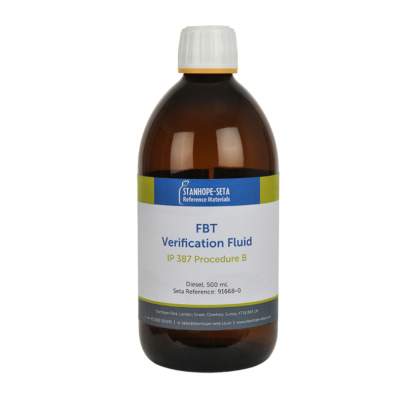 Produced in general accordance with the principles of ISO 17034 and ISO 33405, the Filter Blocking Tendency (FBT) Verification Fluid provides a certified value for a single test method and has been characterised using a single laboratory. It is a highly cost effective solution to help meet verification requirements for audited laboratories and those which comply with ISO 17025.